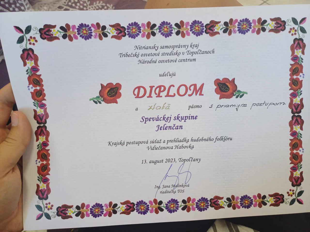 Gratulujeme speváckej skupine z FS Jelenčan, ktorá na krajskej postupovej súťaži a prehliadke získala zlaté pásmo.