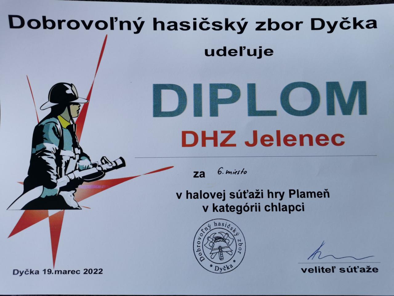 Dňa 19.3.2022 sa uskutočnila Halová súťaž zručnosti detí Vráble - časť Dyčka, kde sme sa zúčastnili z družstvom Plameň z našej obce, kde sme sa umiestnili na 6 mieste. Súťaže sa zúčastnilo 17 družstiev Nitrianskeho kraja.