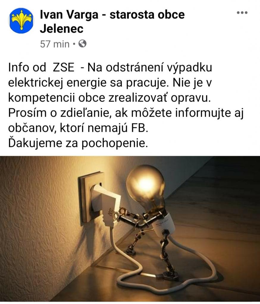 Na odstránení poruchy elektrickej energie sa pracuje.