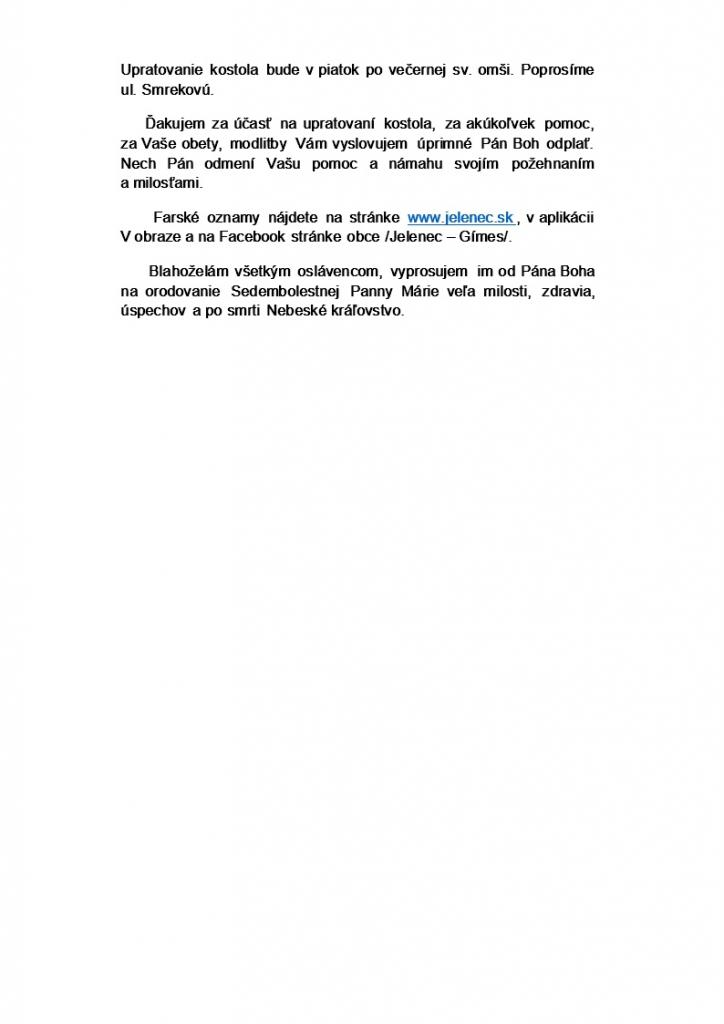 Rozpis svätých omší a informácie nájdete v prílohe.