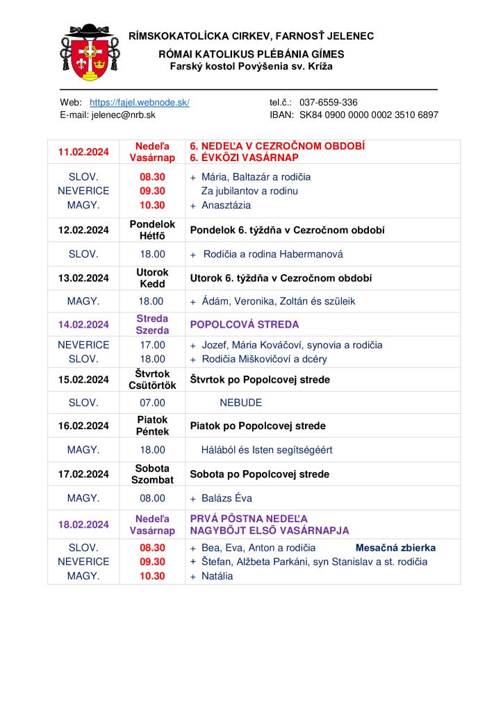 Omšový poriadok - Miserend - 12.2.2024 - 18.2.2024 1