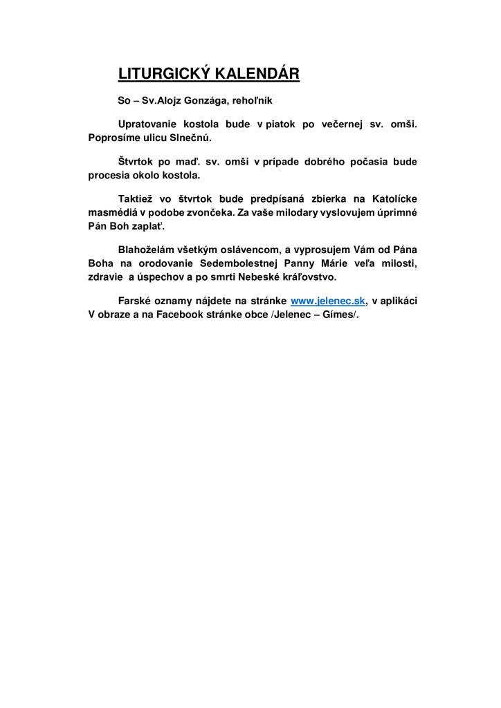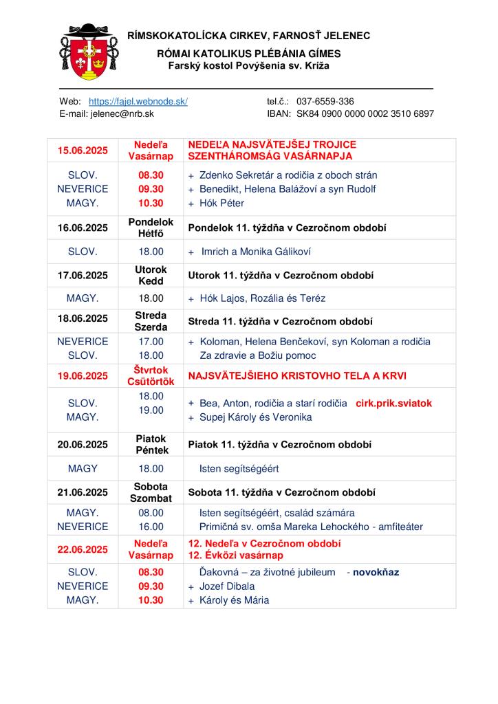 Omšový poriadok - Miserend - 16.6.2025 - 22.6.2025 1