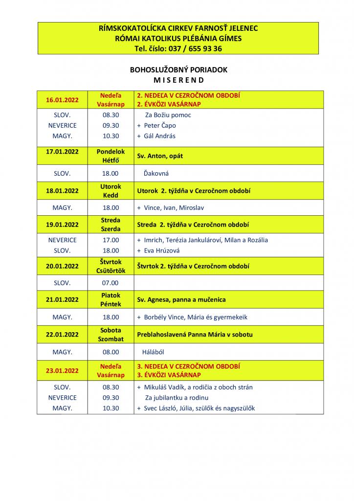 Omšový poriadok - Miserend - 17.1.2022 - 23.1.2022 3