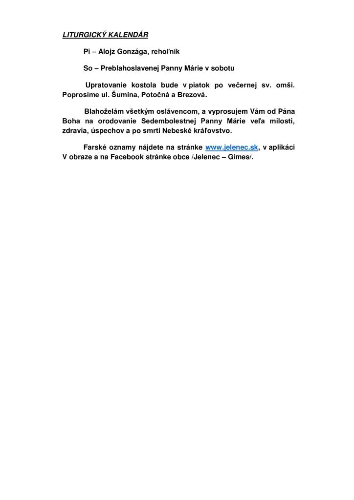 Omšový poriadok - Miserend - 17.6.2024 - 23.6.2024 1