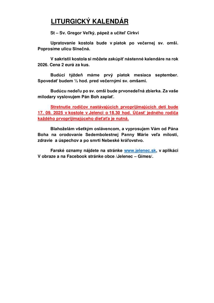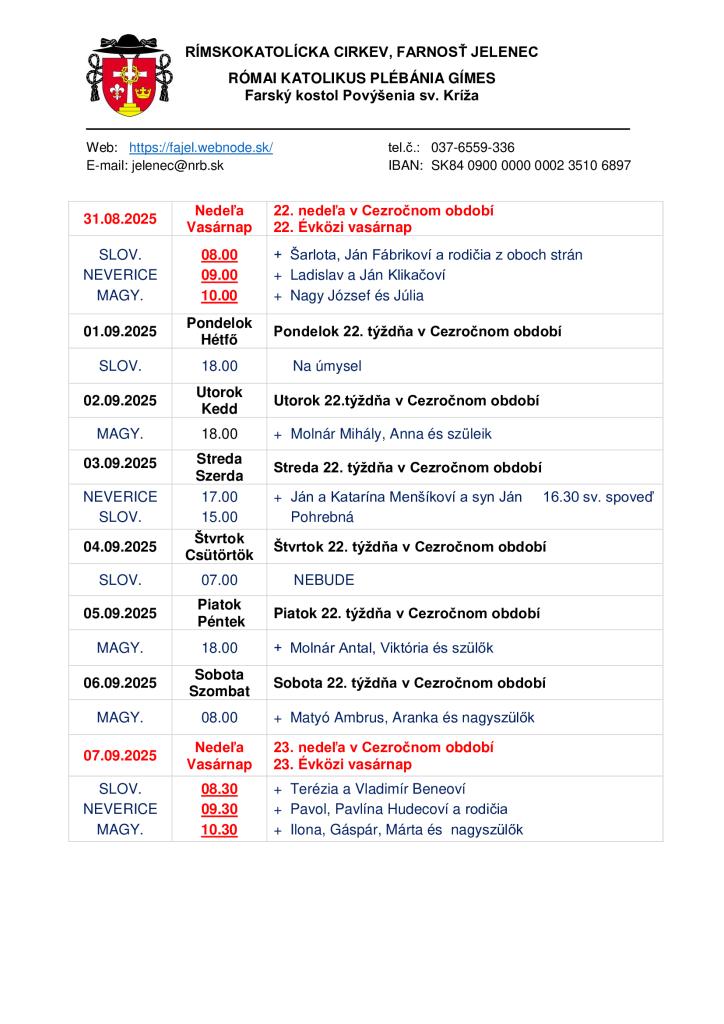 Omšový poriadok - Miserend - 1.9.2025 - 7.9.2025 1