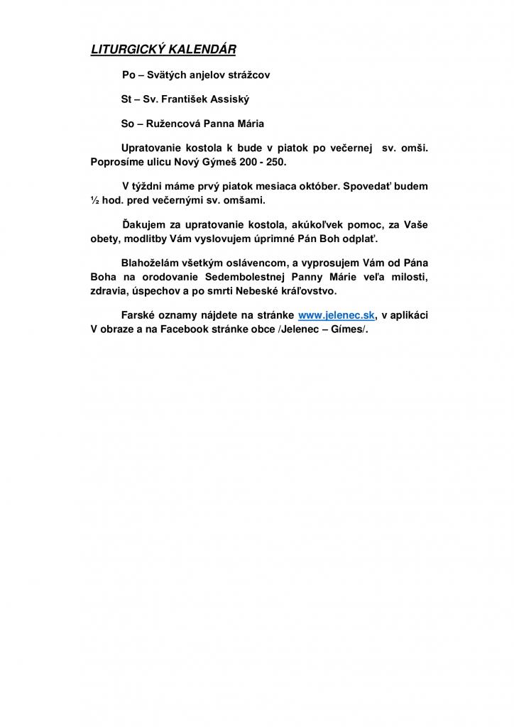 Omšový poriadok - Miserend - 2.10.2023 - 8.10.2023 1