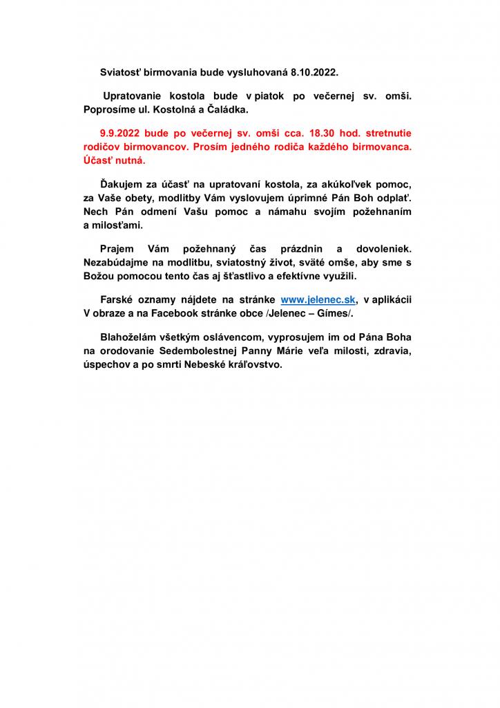 Rozpis svätých omší a informácie nájdete v prílohe.