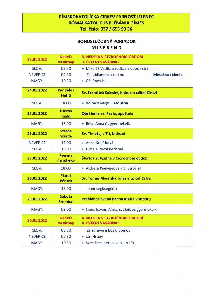 Omšový poriadok - Miserend - 24.1.2022 - 30.1.2022 3