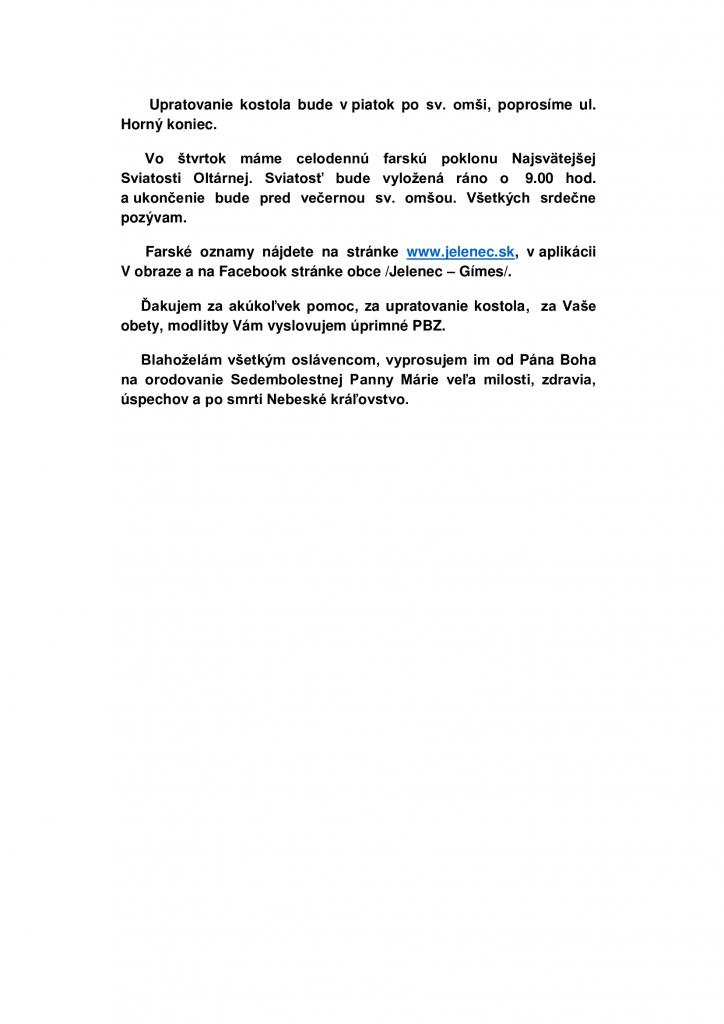 Rozpis svätých omší a informácie nájdete v prílohe.
