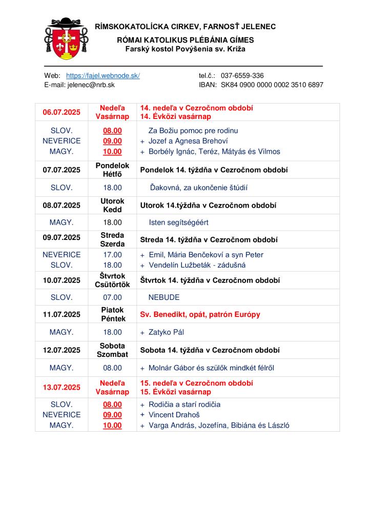 Rozpis svätých omší a informácie nájdete v prílohe.