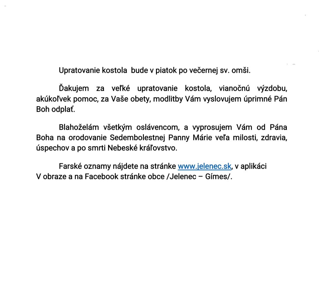 Rozpis svätých omší a informácie nájdete v prílohe.