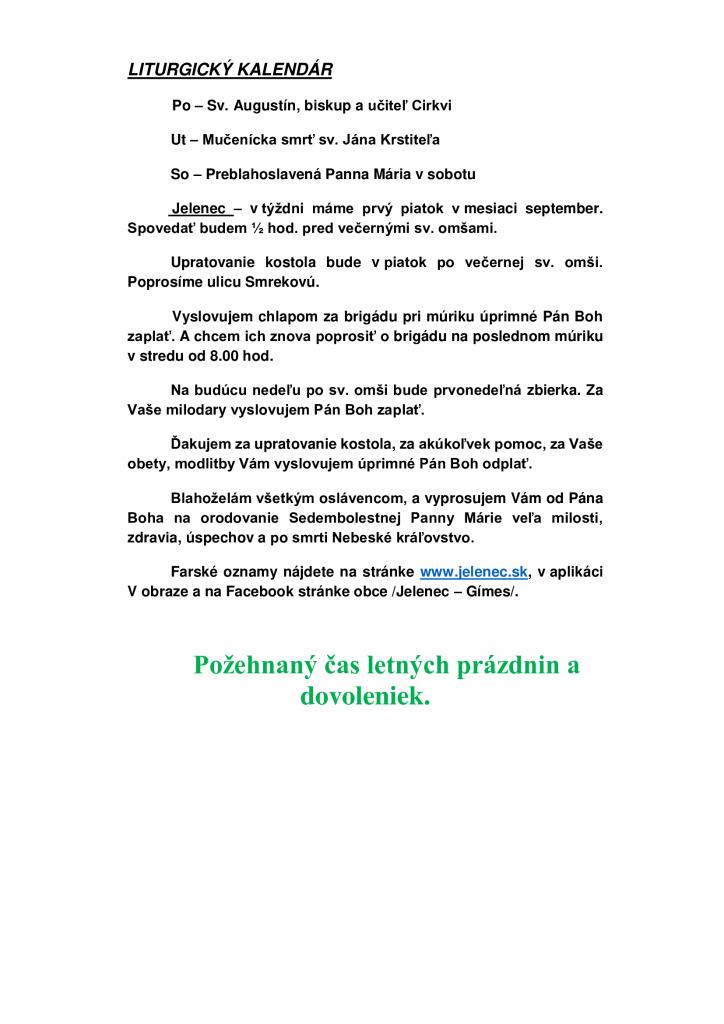 Omšový poriadok - Miserend - 28.8.2023 - 3.9.2023 1