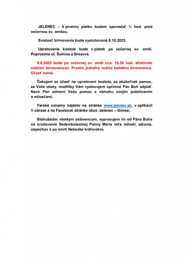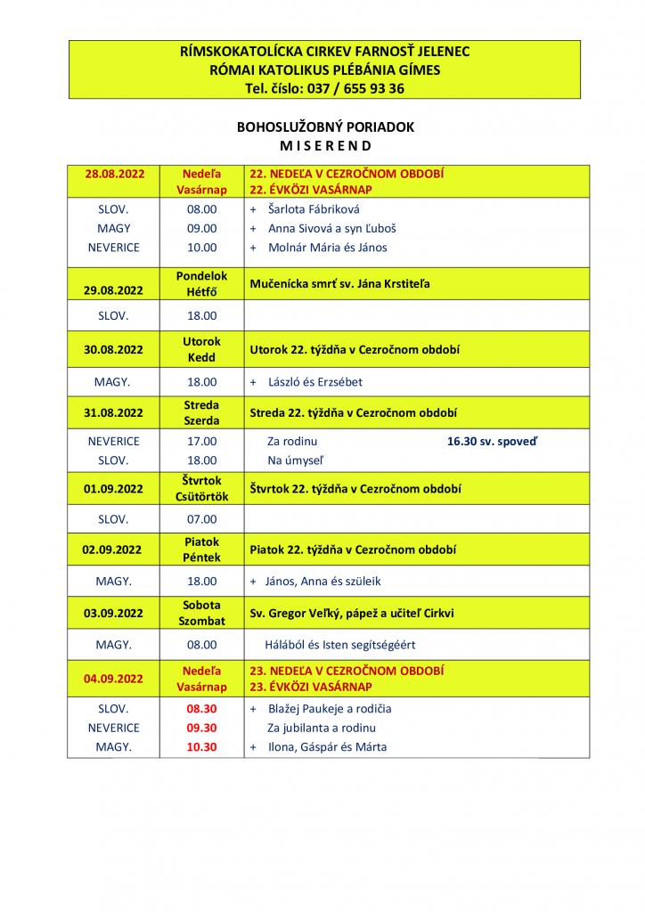 Omšový poriadok - Miserend - 29.8.2022 - 4.9.2022 1