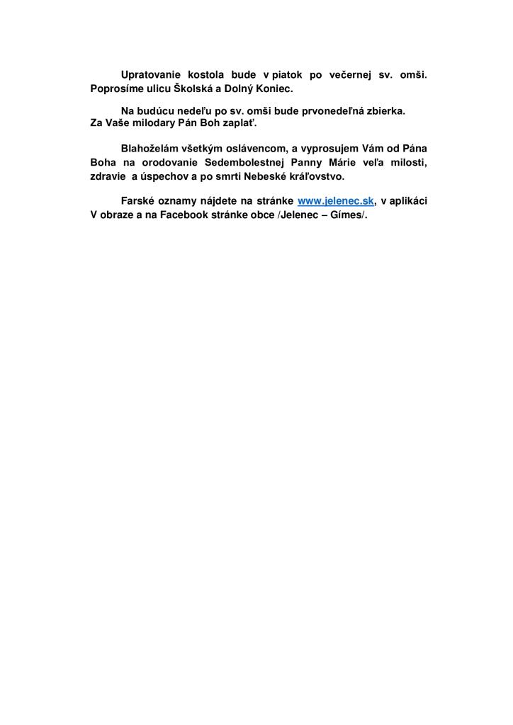 Rozpis svätých omší a informácie nájdete v prílohe.