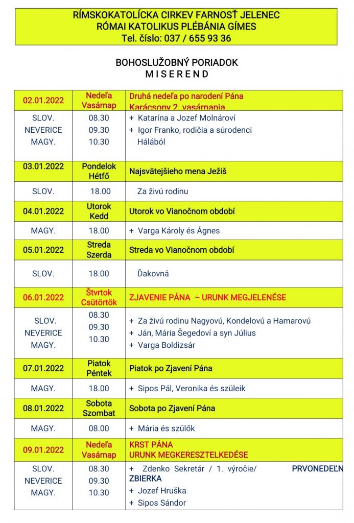 Omšový poriadok - Miserend - 3.1.2022 - 9.1.2022 3