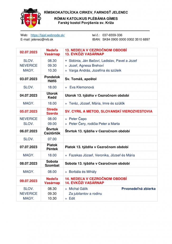 Omšový poriadok - Miserend - 3.7.2023 - 9.7.2023 1
