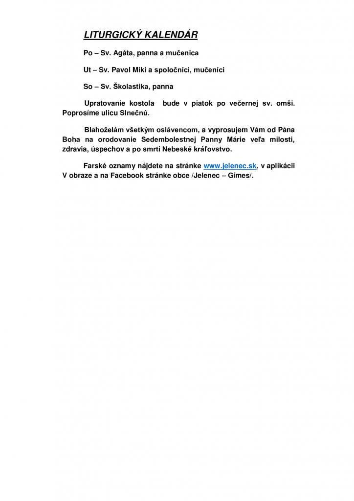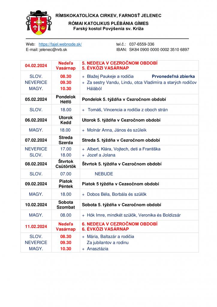 Omšový poriadok - Miserend - 5.2.2024 - 11.2.2024 1