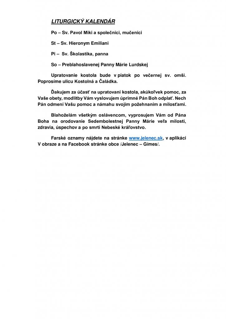 Omšový poriadok - Miserend - 6.2.2023 - 12.2.2023 1