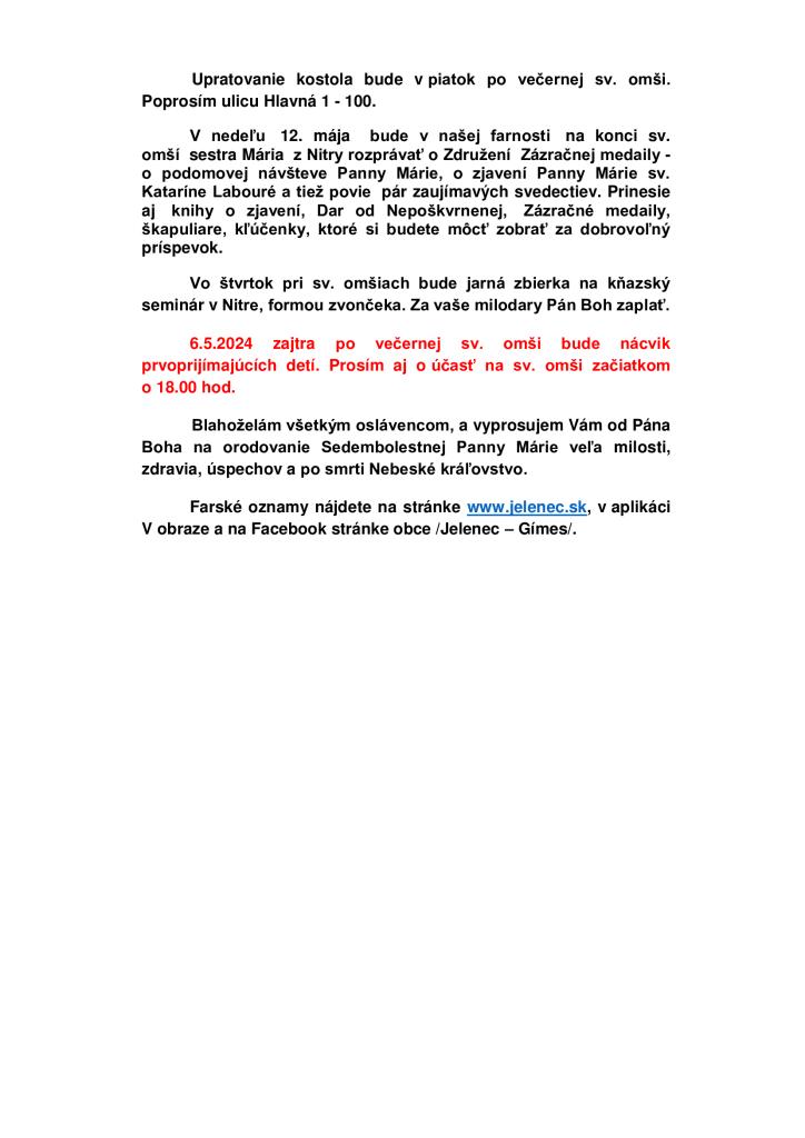 Omšový poriadok - Miserend - 6.5.2024 - 12.5.2024 1