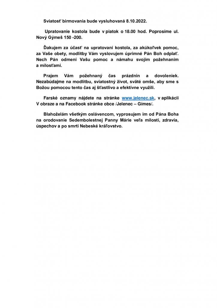 Omšový poriadok - Miserend - 8.8.2022 - 14.8.2022 1