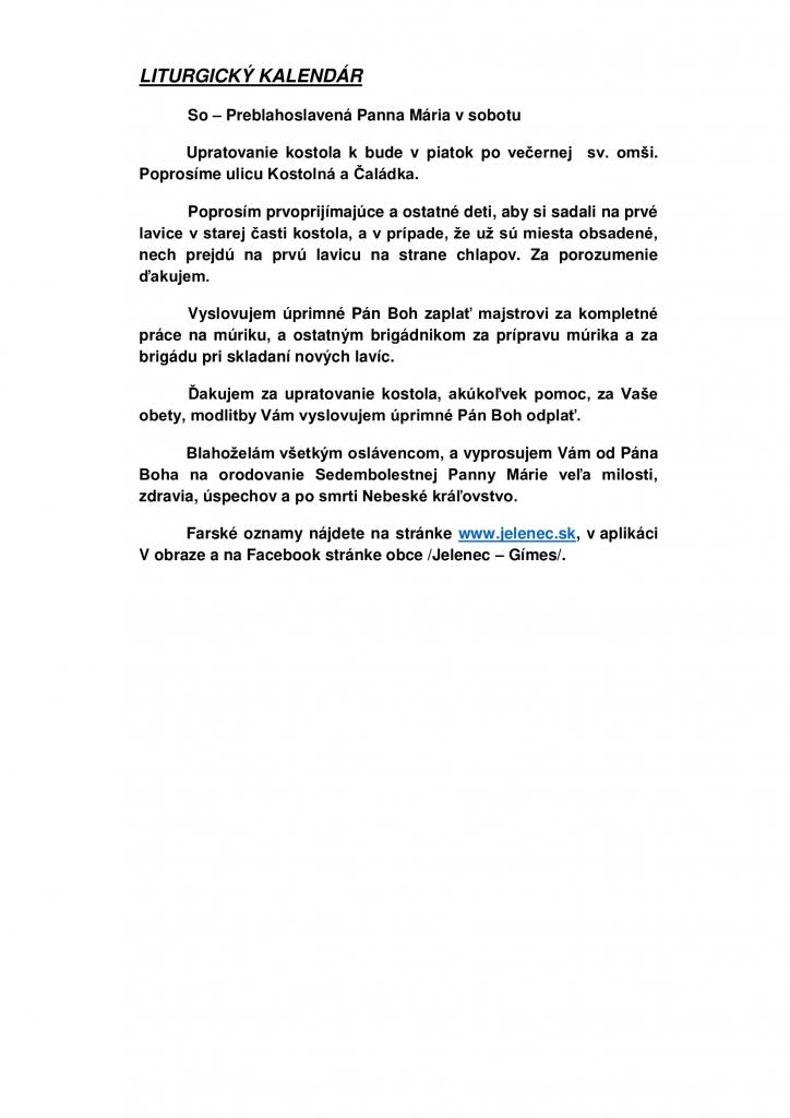Rozpis svätých omší a informácie nájdete v prílohe.