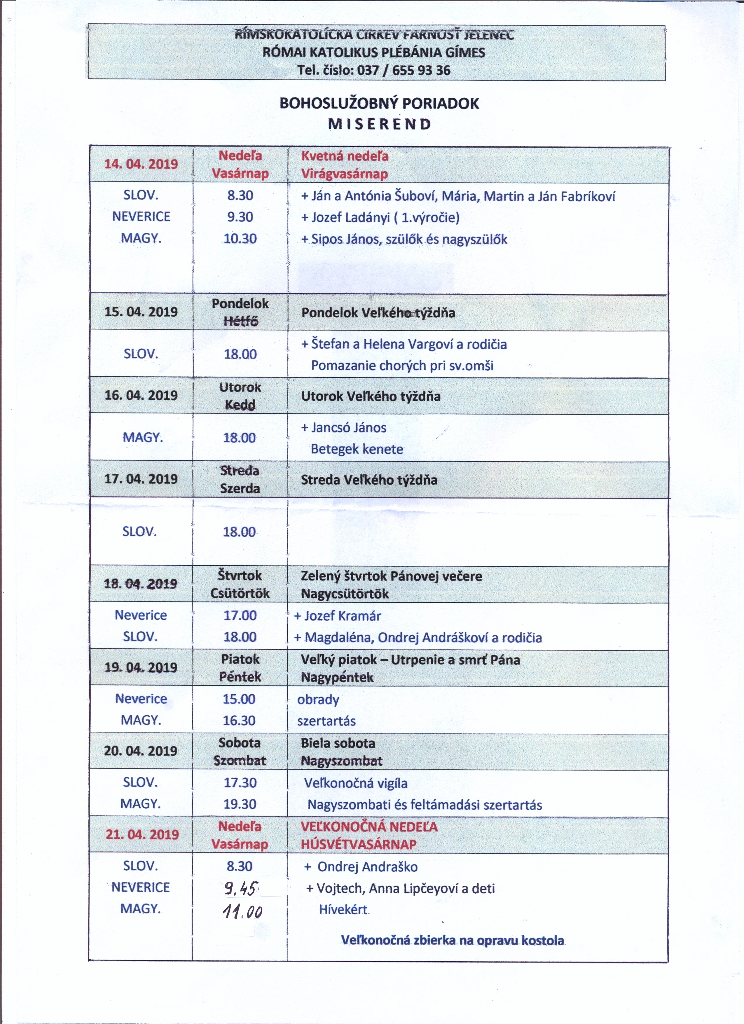 V prílohe nájdete rozpis bohoslužieb na veľkonočný týždeň.