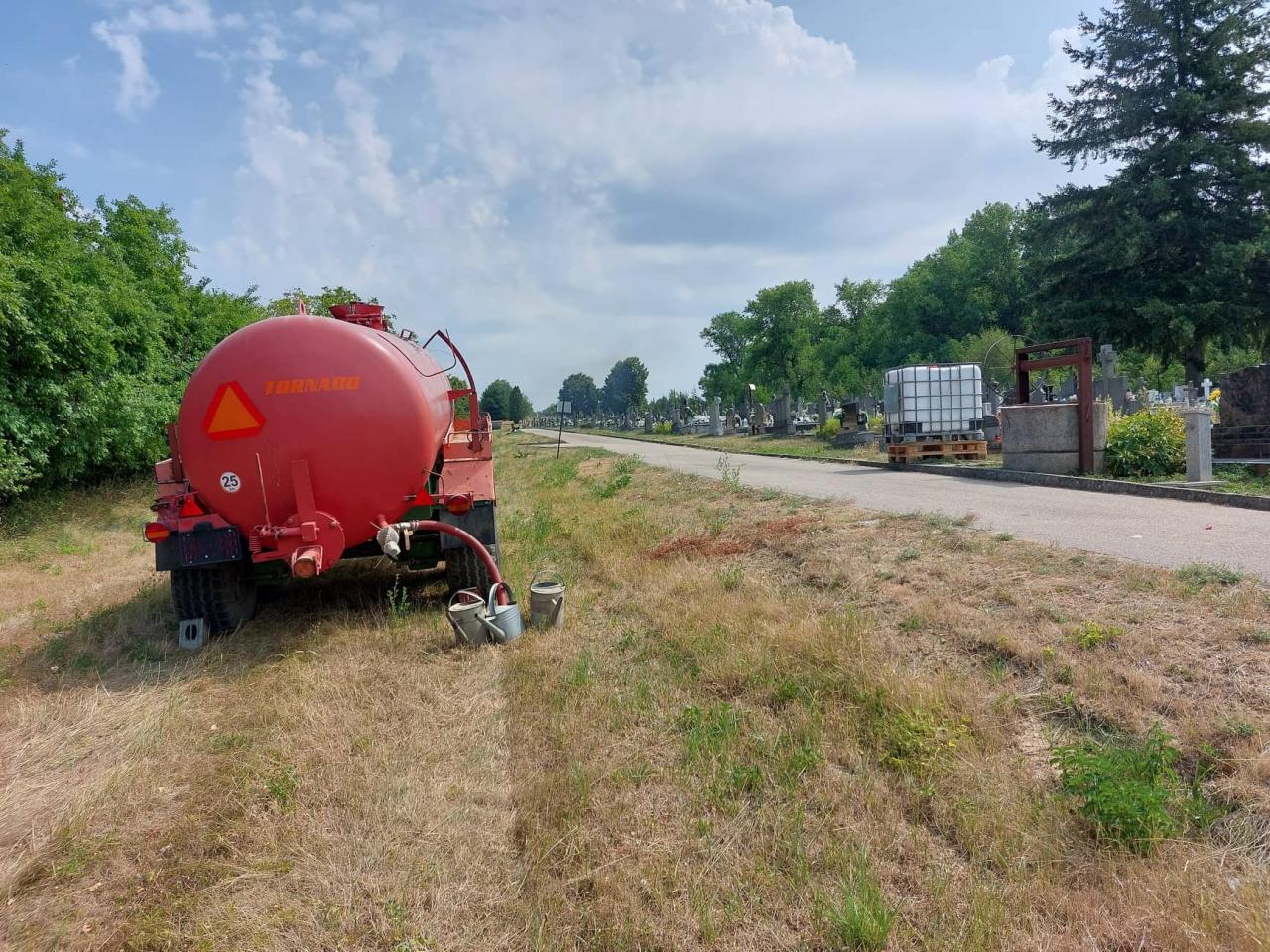 Na cintoríne sa nachádza cisterna s vodou na polievanie.
