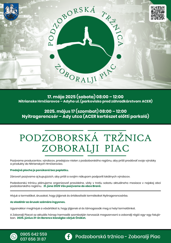 Srdečne Vás pozývame na Podzoborskú tržnicu, ktorá sa tento krát uskutoční v obci Nitrianske Hrnčiarovce.