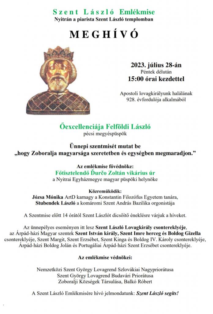 Szent László emlékmise.