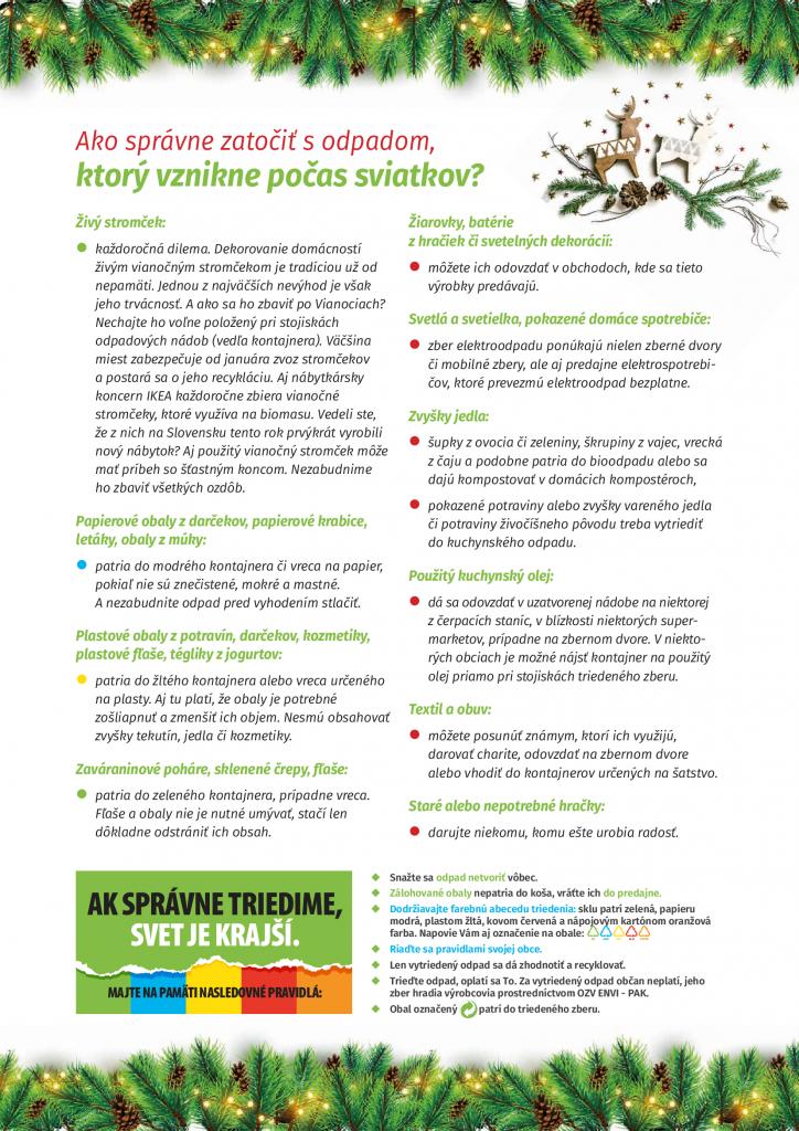 V prílohe si môžete prečítať článok o triedení odpadu aj počas Vianoc.